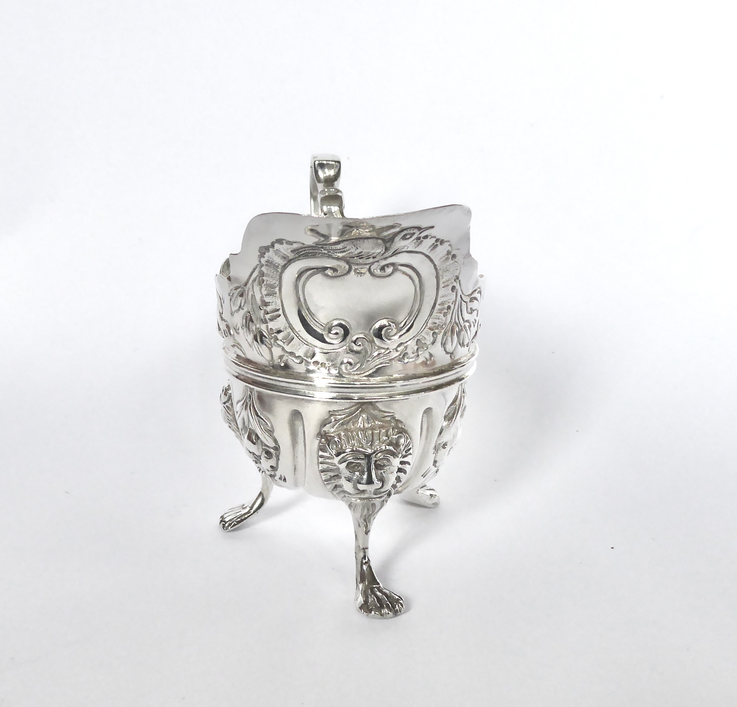 Small Embossed Antique Irish Silver Milk / Cream Jug